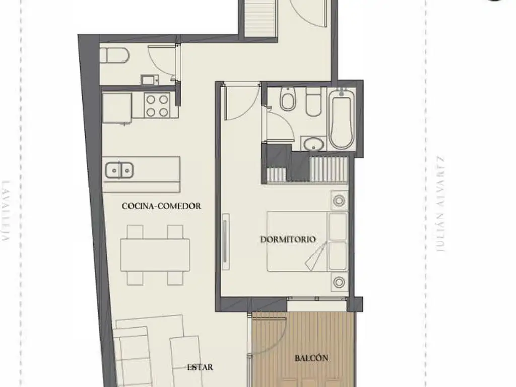 Living comedor con cocina integrada y salida a balcón - Toilette de recepción - Suite con placard y salida a balcón