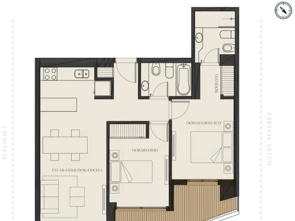 Living comedor con cocina integrada y salida a balcón - Toilette de recepción - Suite con placard y salida a balcón