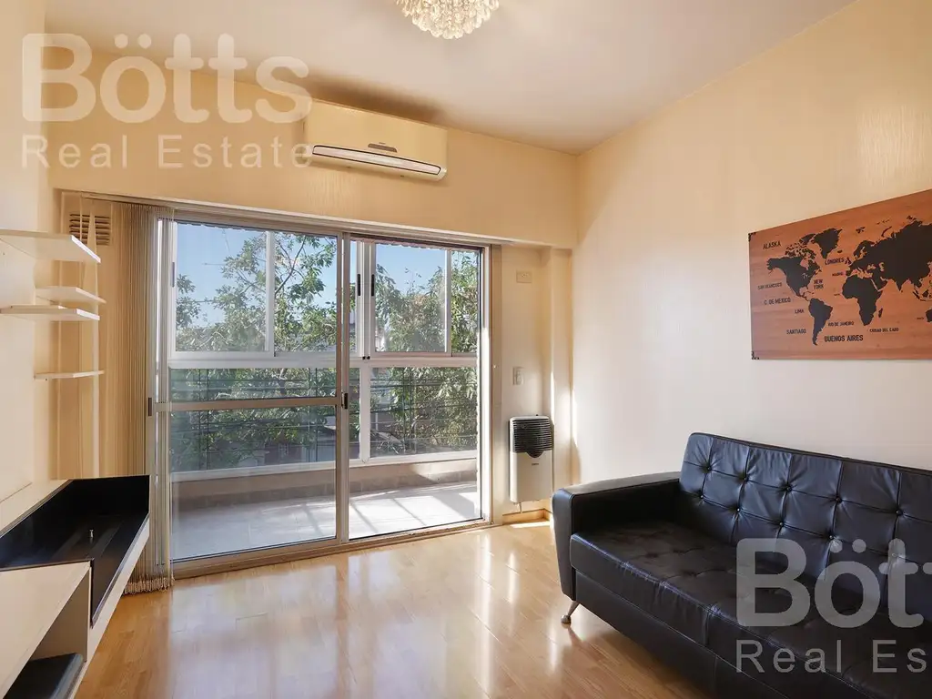 Departamento de dos ambientes, living comedor con conexión al balcón, de 5 m2, el cual posee un cerramiento con calefacción, convirtiéndolo en un ambiente mas. Cocina con muebles bajo mesada y alacena de excelente calidad, posee descarga y conexión para lavarropas.