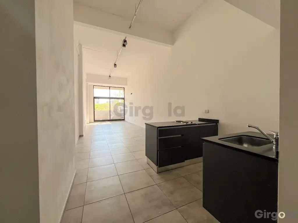 Ambiente principal de doble altura con salida al balcón, buena entrada de luz natural y vista lateral. Cocina eléctrica instalada y conexiones previstas para aire acondicionado. La altura disponible permite incorporar un entrepiso, con posibilidad de sumar entre 9 y 16 m² de superficie adicional.