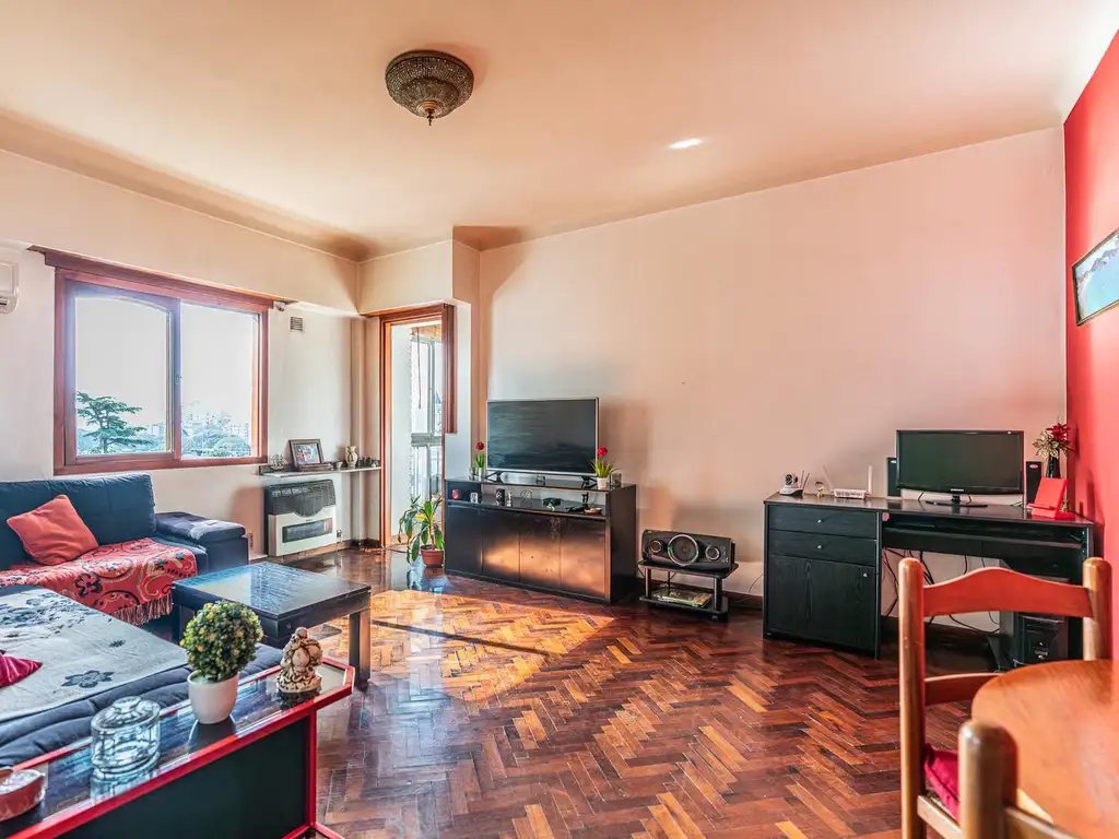 Living comedor con pisos de parquet. Estufa tiro balanceado. Salida a balcón aterrazado con cerramiento.