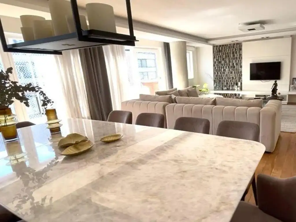 Balcon frente 15 m2 de frente, toilete con mesada de mármol, y revestimiento escamas de pescado.