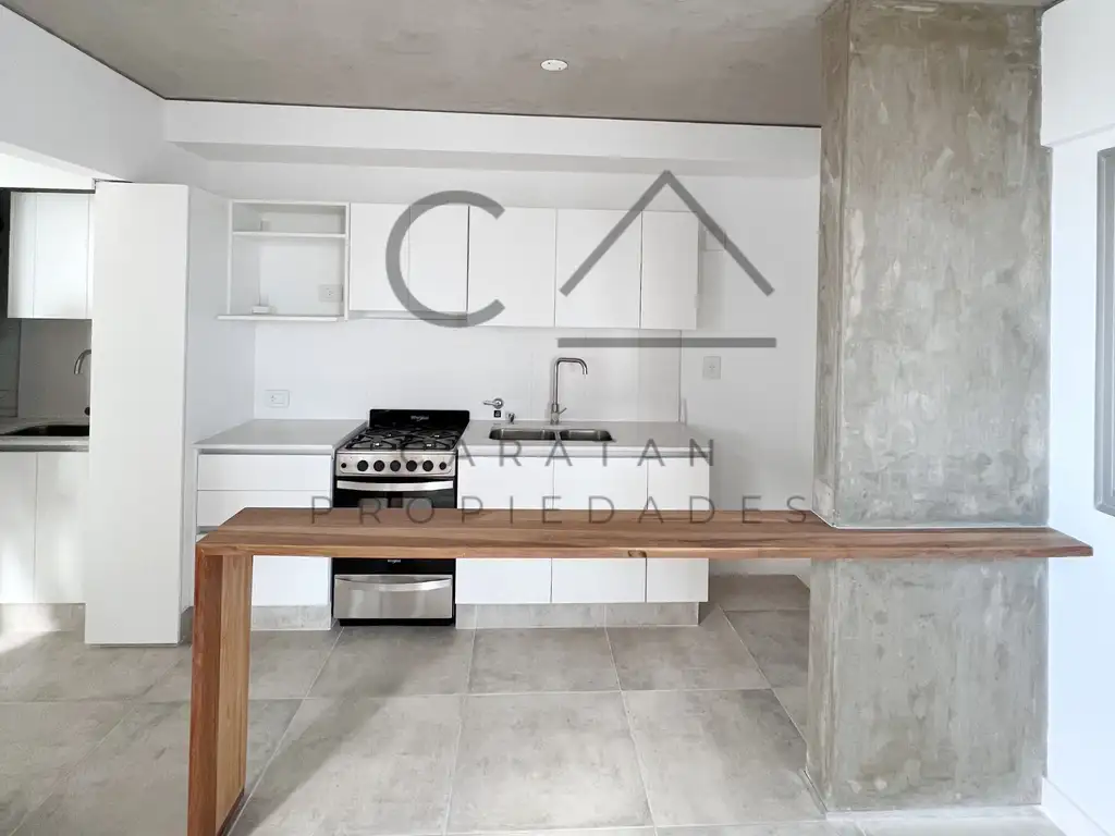 La unidad cuenta con un dormitorio con placard, baño completo, cocina comedor, zona lavadero y espacio privado. El mismo cuenta con aberturas de aluminio DVH, pisos porcelanato, griferias primeras marcas, espejo y mesada de marmol, instalaciones previstas para AA y muebles de cocina de diseño en madera.