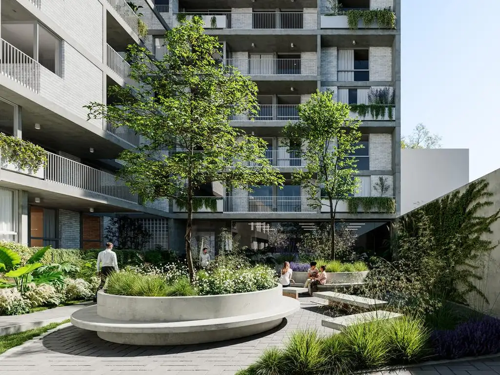 En este lote de generosas dimensiones, la masa edificada se organiza en torno a un patio interior, que se convierte en el corazón del proyecto. El mismo se conforma como un espacio verde, de esparcimiento y recreación que busca complementar los espacios abiertos y semicubiertos de las unidades, y generar un ambiente de comunidad en un entorno seguro. A este patio se le suman variados amenties en la azotea, como quincho, gimnasio y pileta.