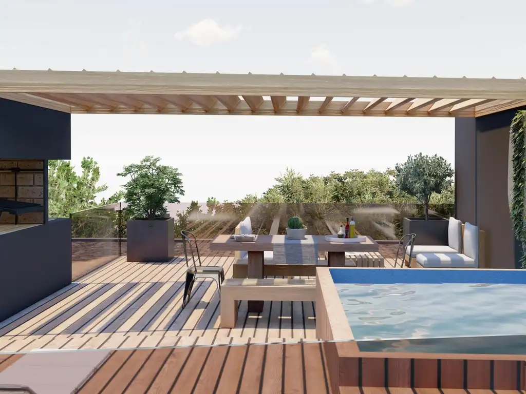 Unidades del piso 4 con terrazas exclusivas en azotea de ingreso interno, forestadas, con parrilleros, mini piscinas (opcional) y solarium en deck.