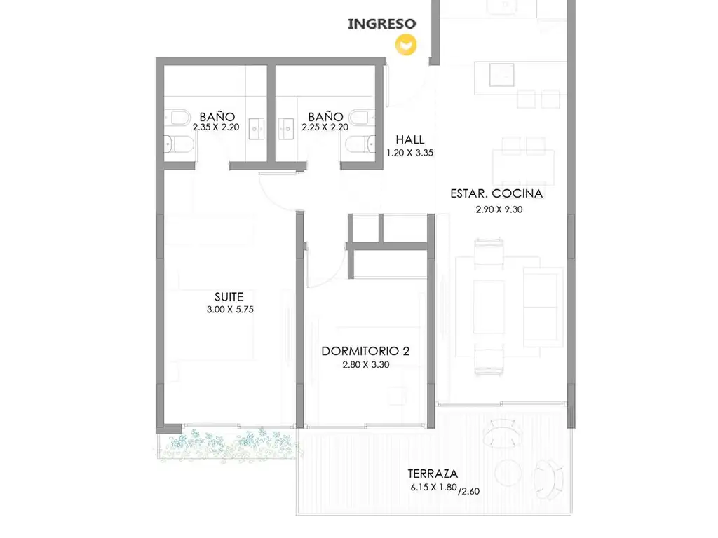 - 2 dormitorios