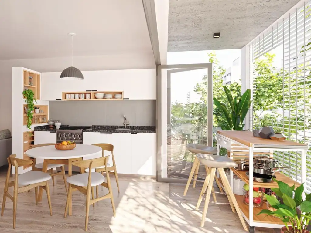 La unidad cuenta con amplio ambiente que conecta la cocina comedor y el living con salida al balcón al frente con orientación Norte con ventanal que aportan gran luminosidad y ventilación natural. Balcón con parrillero.c