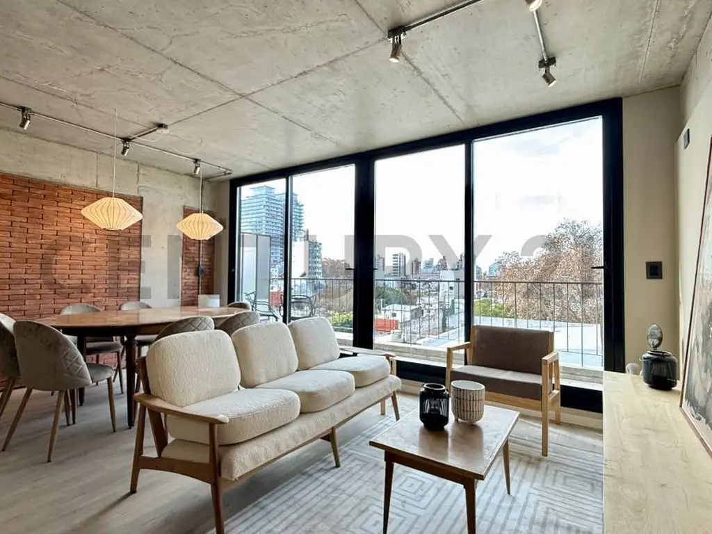 El living comedor, espacioso y lleno de luz, se integra armoniosamente con una cocina moderna y completamente equipada. Desde el living, accedés a un balcón que invita a disfrutar del aire libre y las vistas.