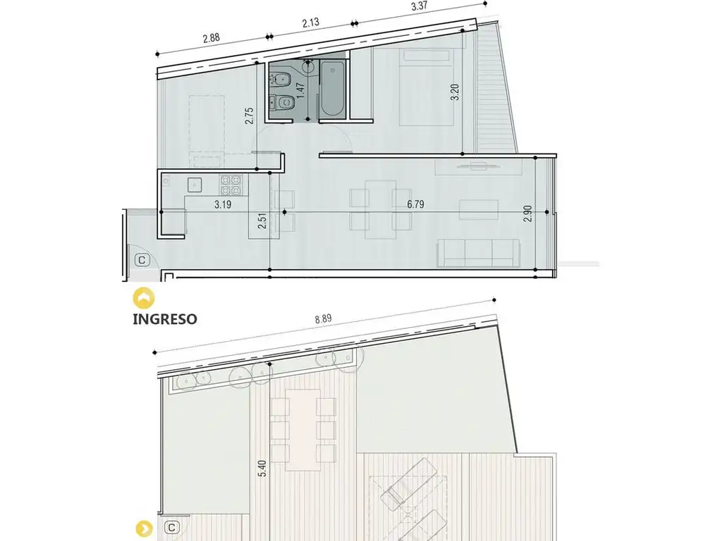 Pisos de porcelanato en áreas sociales y húmedas; Dormitorios con pisos flotantes; Aberturas de aluminio con DVH; Mesadas de cocina en granito natural; Mobiliario de cocina completo; Sanitarios y griferías de primeras marcas; Preinstalación de aire acondicionado; Puertas interiores de madera enchapada; Muros enduidos y pintados; Barandas metálicas en terraza; Iluminación exterior en espacios comunes