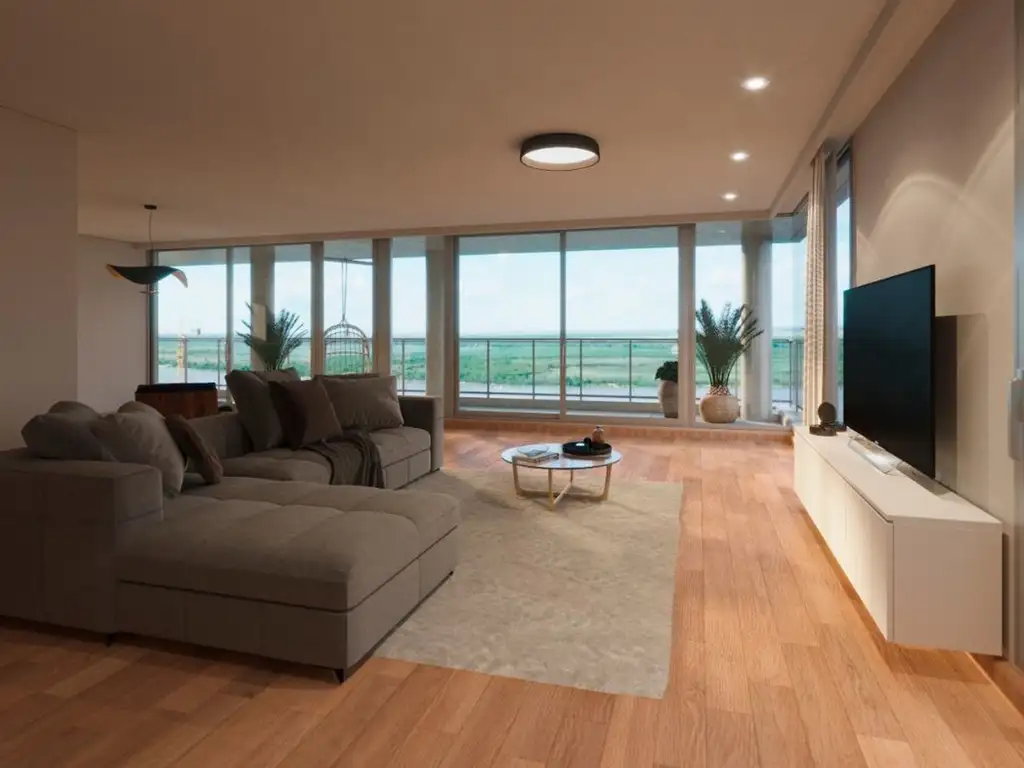 La unidad cuenta con amplio living comedor, cocina con comedor diario, balcón terraza con vista franca al río y parrilla.