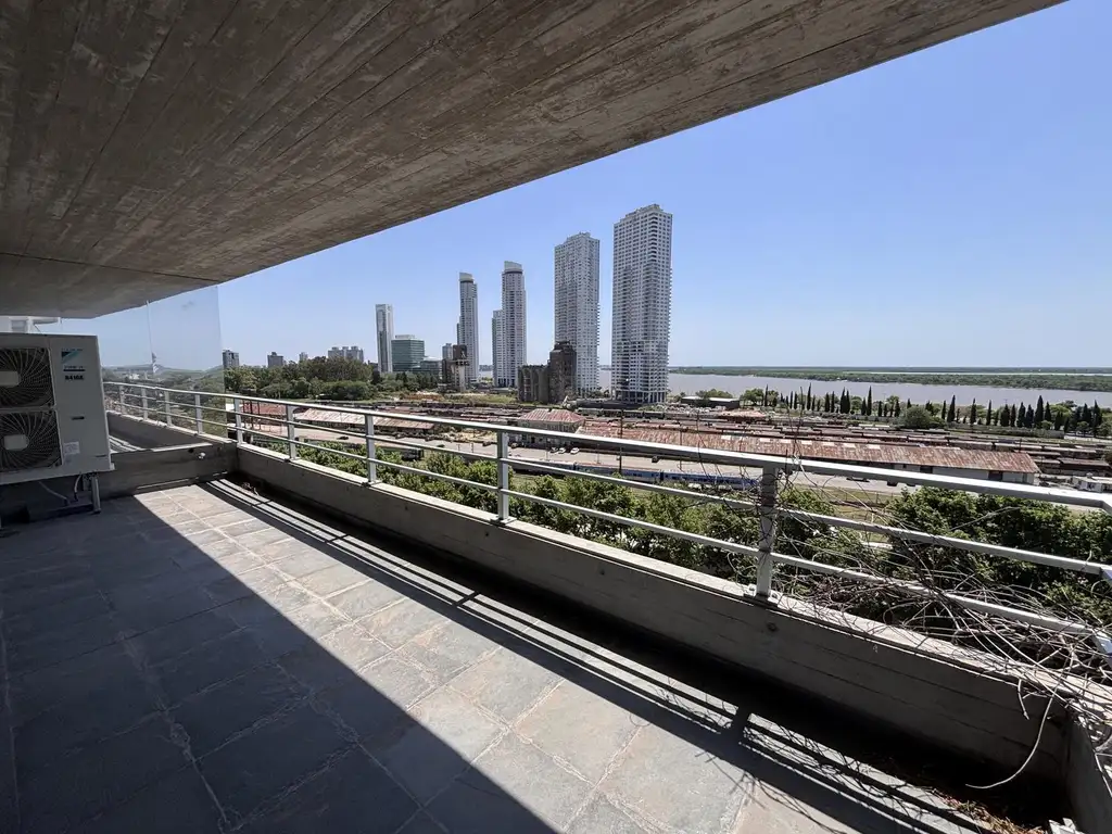 Perfecta distribución de planta con amplio living anexos a la cocina y balcon aterrazado al frente Norte con vista al río, 2 baños, uno en suite. Todos los ambientes cuentan con gran luminosidad y ventilación. Calidades premium con una estructura de hormigón visto y maceteros verdes, aberturas de alta prestación en aluminio con DVH, pisos de madera de ingeniería en combinación con porcelanato para espacios húmedos, agua caliente central y climatización por aire con equipos VRV más losa radiante eléctrica en los baños, mucho espacio de guardado con placares terminados, cocina de diseño íntimo, mesada de silestone, horno y anafe eléctricos diferenciados, bacha de acero inoxidable y mobiliario completo de piso a techo con bajo mesada más alacenas. Baños con loza sanitaria y griferías de primeras marcas.
