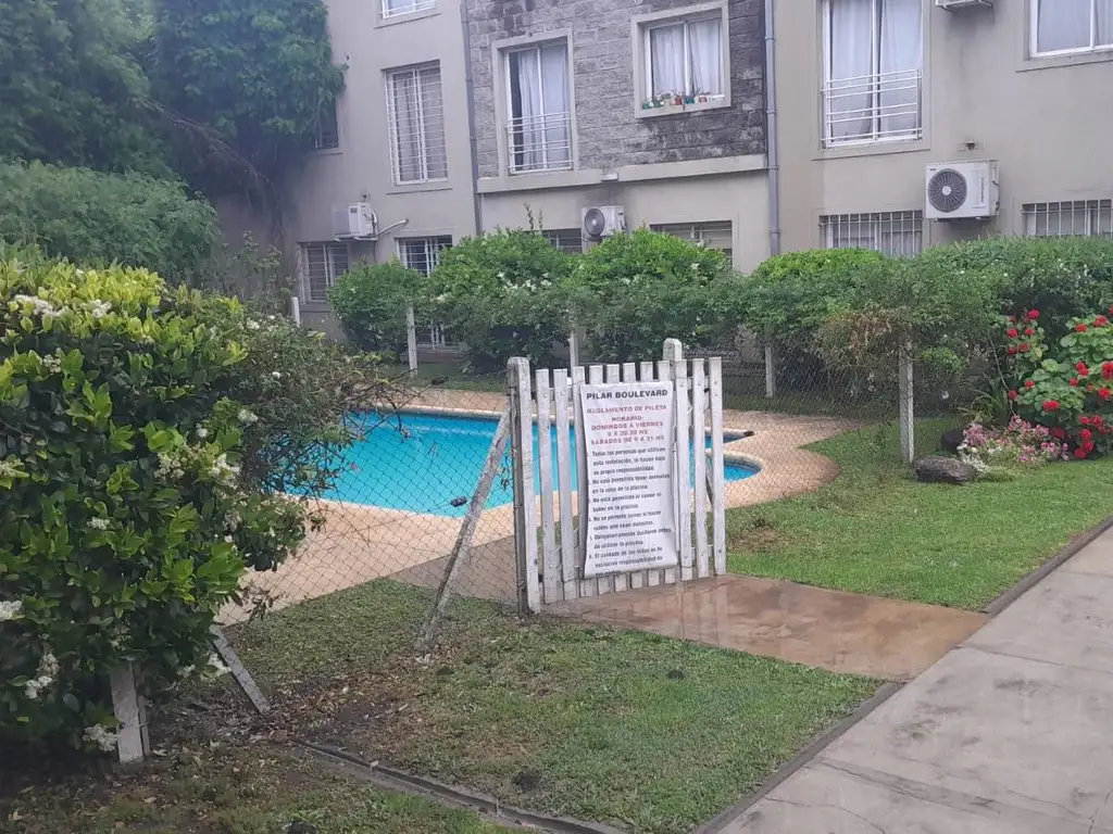 El Edificio cuenta con un espacio comun con Piscina, Solarium y Jardin.