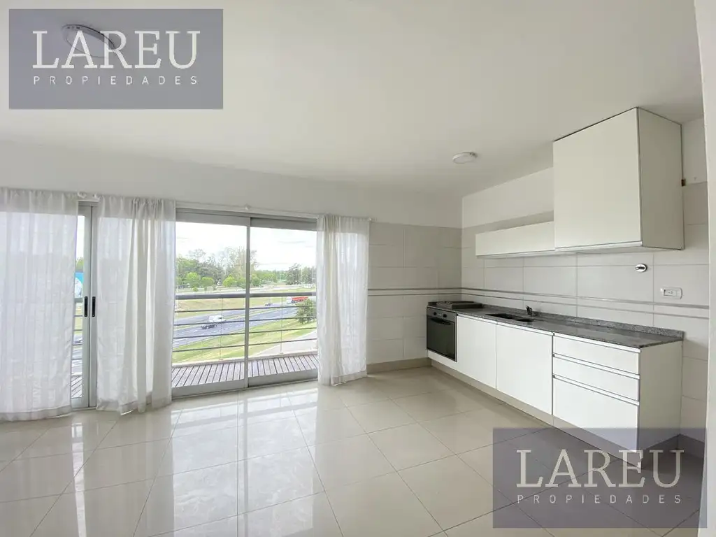 Gran living comedor con cocina integrada. 1 dormitorio con placard. Baño completo. Gran balcón terraza en L a, con vista a panamericana. Cochera subterránea. Laundry . Ascensores.
