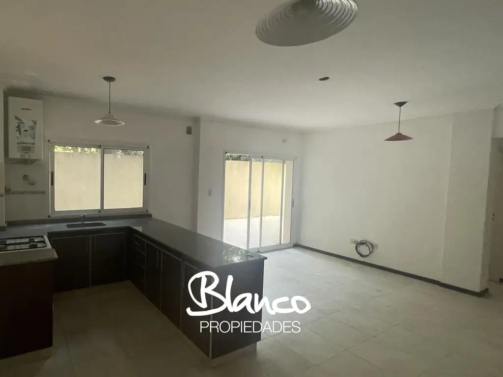 Amplio dos ambientes, con espacioso patio. El departamento tiene cochera subterránea, se encuentra en una importante calle de Pilar a metros de medios de transportes, escuelas, bancos y centro comercial.