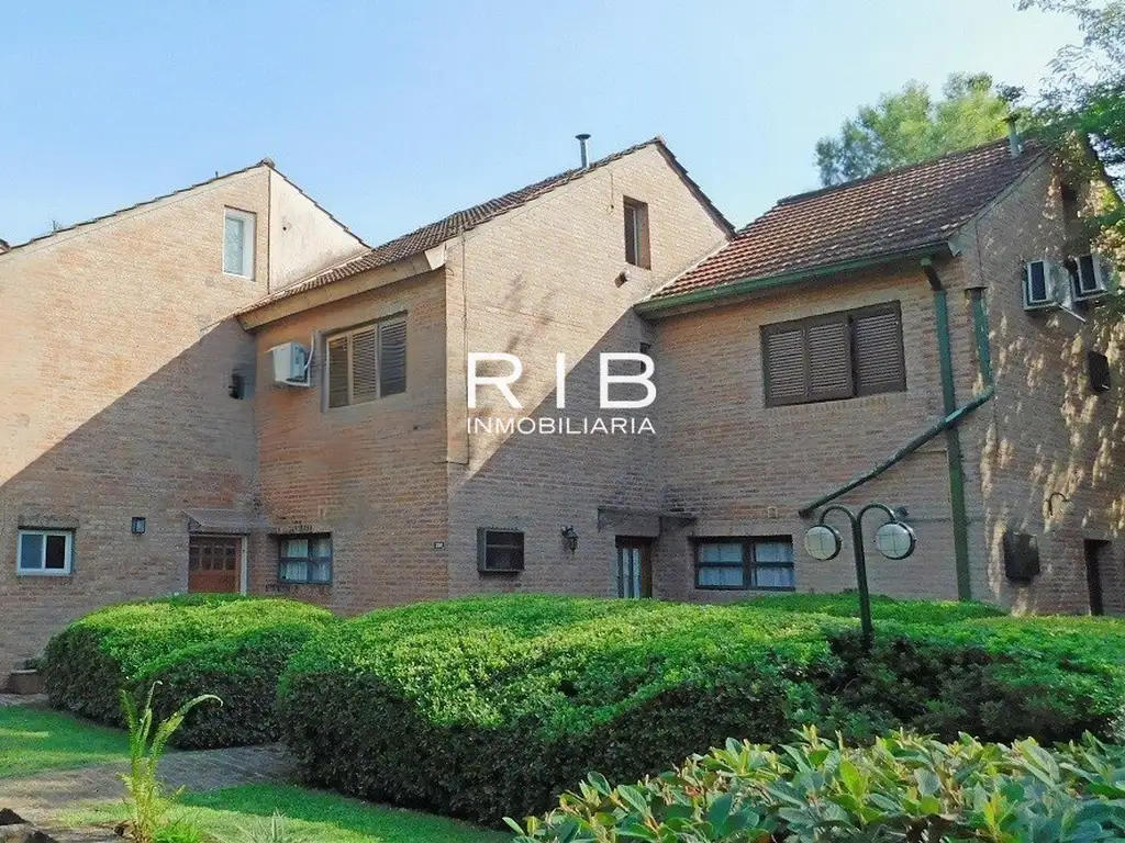 Con acceso a áreas deportivas y sociales. Departamento en 3 plantas de 75 m2 cubiertos. Pisos en cerámicos, calefacción por tiro balanceado y aberturas en chapa.Encontramos living con hogar y comedor integrados con salida a una galería con pérgola. Toilette de recepción. Cocina con amoblamientos. En el 2do nivel 2 dormitorios con placares y un baño completo. En el 3er nivel un escritorio. En el exterior, una cochera descubierta. Propiedad a la venta sin muebles. Dispone de acceso a las áreas deportivas y sociales del country.