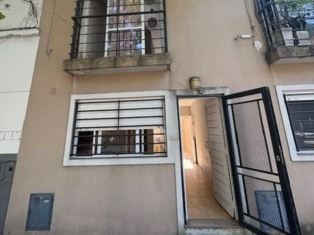 Es un moderno Dúplex de 2 ambientes al frente, con entrada independiente, edificado hace 13 años, sobre un inmueble que consta de 4 unidades funcionales, todas al frente, totalmente independientes y sin gastos de mantenimiento de expensas. Está muy bien ubicado a solamente 1 cuadra de la Av.Hipólito Yrigoyen y en el tranquilo barrio llamado "El Pueblito". Es una unidad muy cómoda de por ser de 2 ambientes, tiene 2 baños y cuenta con un amplio patio propio que realza su mejor estilo de vida. Las comodidades en Planta Baja son las siguientes: living (3,06 x 3,05) al frente, con piso de cerámica y ventana al exterior con rejas; cocina (3,80 x 1,80) con piso y revestida en cerámica, equipada con muebles de bajo mesada y alacenas en melamina, mesada de mármol y campana de extracción; patio amplio (3,94 x 3,83) con piso de cerámica y lavadero. Piso 1: escalera de acceso en madera; pasillo de distribución (1 x 1) con piso cerámica simil madera; dormitorio grande (3,12 x 3,00) al frente, con piso de cerámica simil madera, vestidor (2,35 x 1,14) con placares y ventana al exterior, y balcón francés; y baño (2,24 x 1,88) con piso y revestido en cerámica y vanitory.