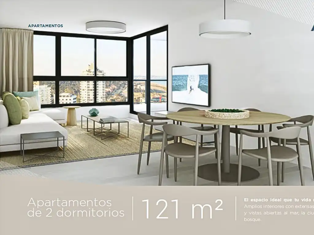 Ambientes luminosos, amplios balcones y terrazas con vistas panorámicas al mar, el bosque y la ciudad