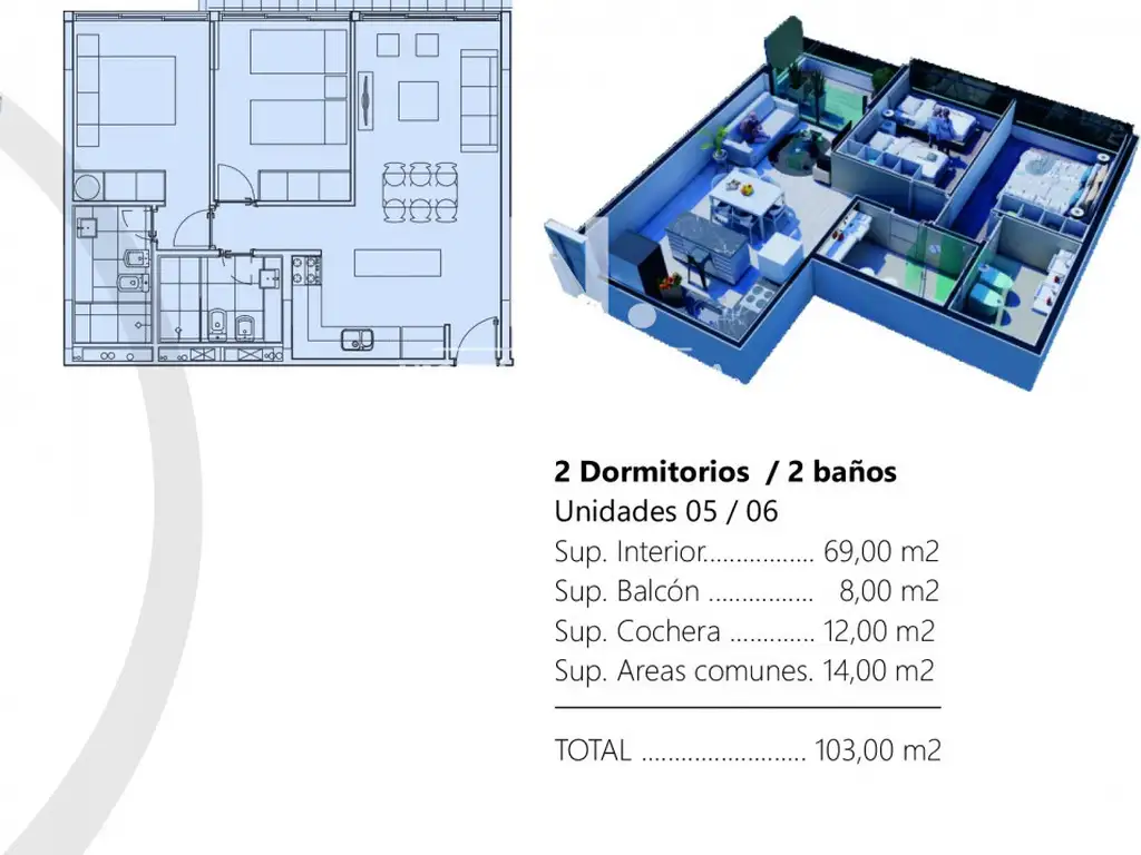 El apartamento dispone de 2 dormitorios, uno de ellos en suite, y 2 baños completos, proporcionando una capacidad de alojamiento para 6 personas. El diseño interior destaca por un espacio integrado de living comedor y cocina americana, creando un ambiente social ideal para la convivencia y el entretenimiento. La cocina americana, equipada con anafe y placares, facilita la preparación de comidas sencillas. Los dormitorios, diseñados para el descanso y la privacidad, están equipados con placares, asegurando un almacenamiento adecuado. Los baños, con acabados de calidad, incluyen bidet. El equipamiento adicional comprende T.V., ofreciendo opciones de entretenimiento para los residentes.