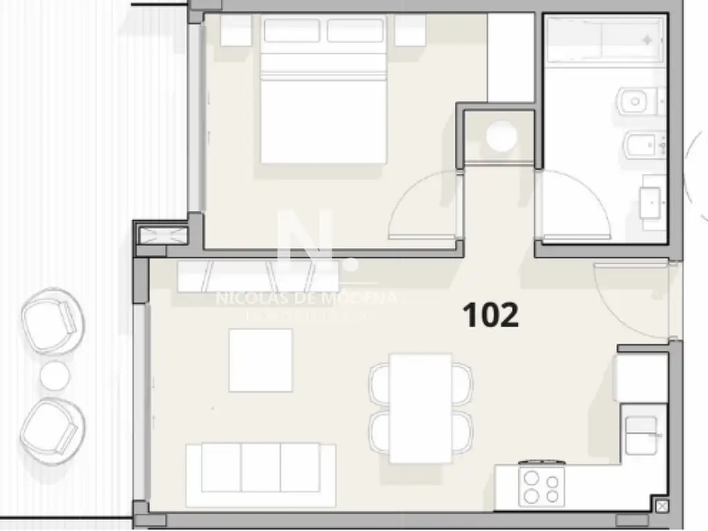 El dormitorio es acogedor y luminoso, con placard integrado, y el baño completo incluye bañera y bidet, brindando mayor comodidad y funcionalidad.