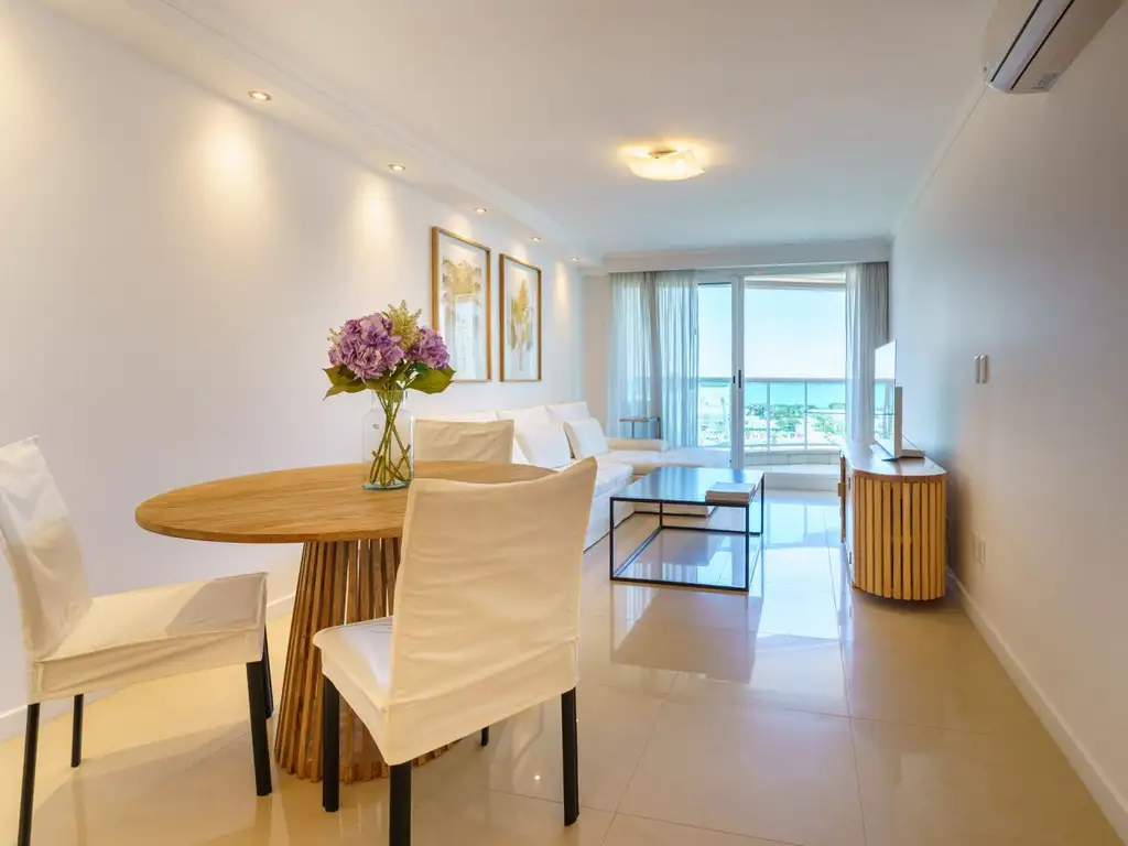 Espectacular apartamento de 2 dormitorios y medio en torre de categoría con completos servicios y amenities. Excelente ubicación, próximo a Playa Mansa y a La Península. Cómodo living comedor con salida a terraza con vista al mar y parrillero propio, 2 dormitorios en suite (ppal en suite al frente con vista al mar y vestidor), 2 baños, 1/2 dormitorio, toilette, cocina definida con salida a terraza lavadero. Totalmente equipado. Garaje.
