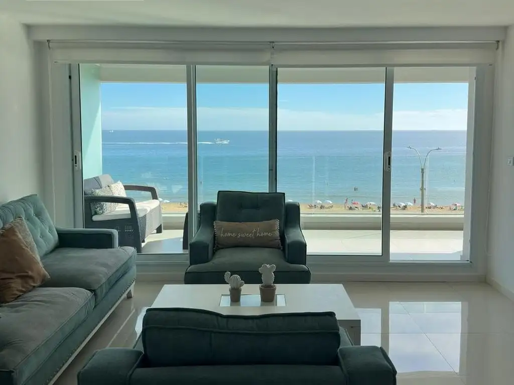 En la primer planta tenemos living comedor, con balcón, cocina definida y terraza lavadero al contrafrente del edificio con dependencia de servicio completa, toilette, el dormitorio principal da hacia el frente obteniendo vista al mar y acceso al balcón. Dormitorio chico al contrafrente con baño en suite. La unidad cuenta con losa radiante sectorizada . Posteriormente en la segunda planta tenemos una terraza de uso exclusivo, parrillero, y un sector techado con baño. En esta área se puede realizar a futuro cerramiento dejando el parrillero cerrado para darle uso todo el año sin desperdiciar estas hermosas vistas y agregando áreas sociales a la unidad para mayor confort.