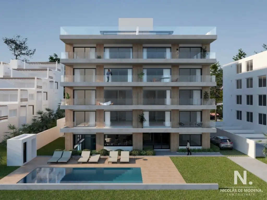 Se desarrolla en planta baja con piscina interior y exterior, gimnasio, barbacoas y estacionamientos con bahuleras.