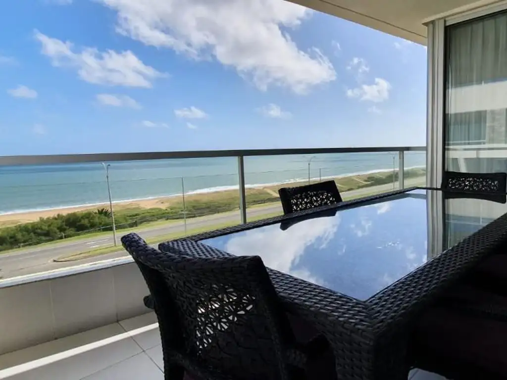 Hermoso departamento de tres dormitorios en suite frente a Playa Mansa, living comedor vista al mar, terraza al frente, toilette, amplia cocina definida completa, aire central frio calor sectorizable cochera para dos autos y baulera. Terraza al fondo. Hidromasaje en suite principal.