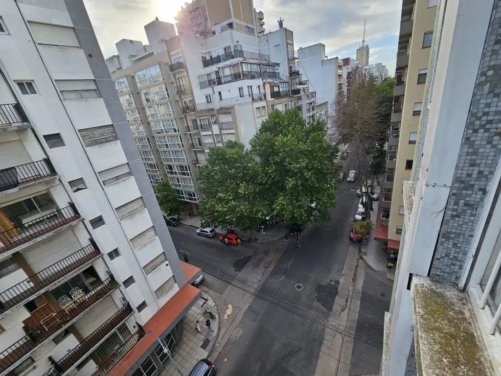Departamento de 1 AMB y 1/2 a la calle con balcón francés. Se desarrolla en un séptimo piso y consta de un amplio ambiente dividido,dormitorio c/ placar y balcón francés a la calle, living comedor, cocina equipada con heladera, cocina, caldera y baño completo con bañera, reciclado.