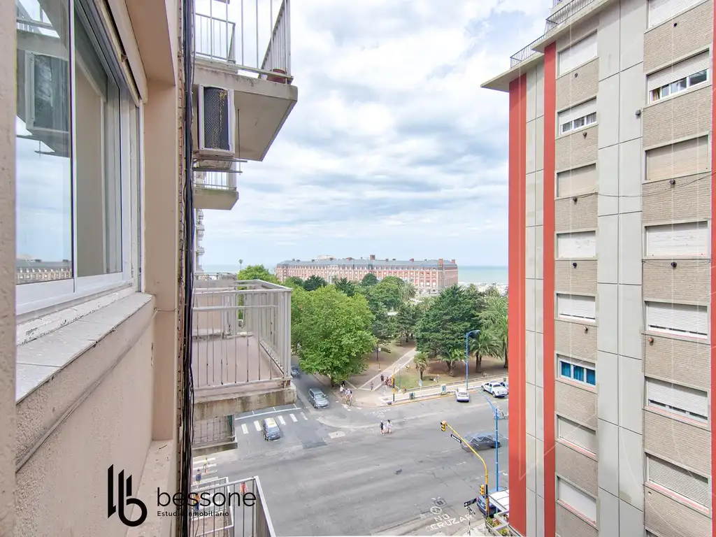 Este luminoso departamento de 3 ambientes y 75 m2 cuenta con una ubicación privilegiada, ofreciendo vistas directas a Plaza Colón y al mar desde su amplio living comedor con balcón saliente.