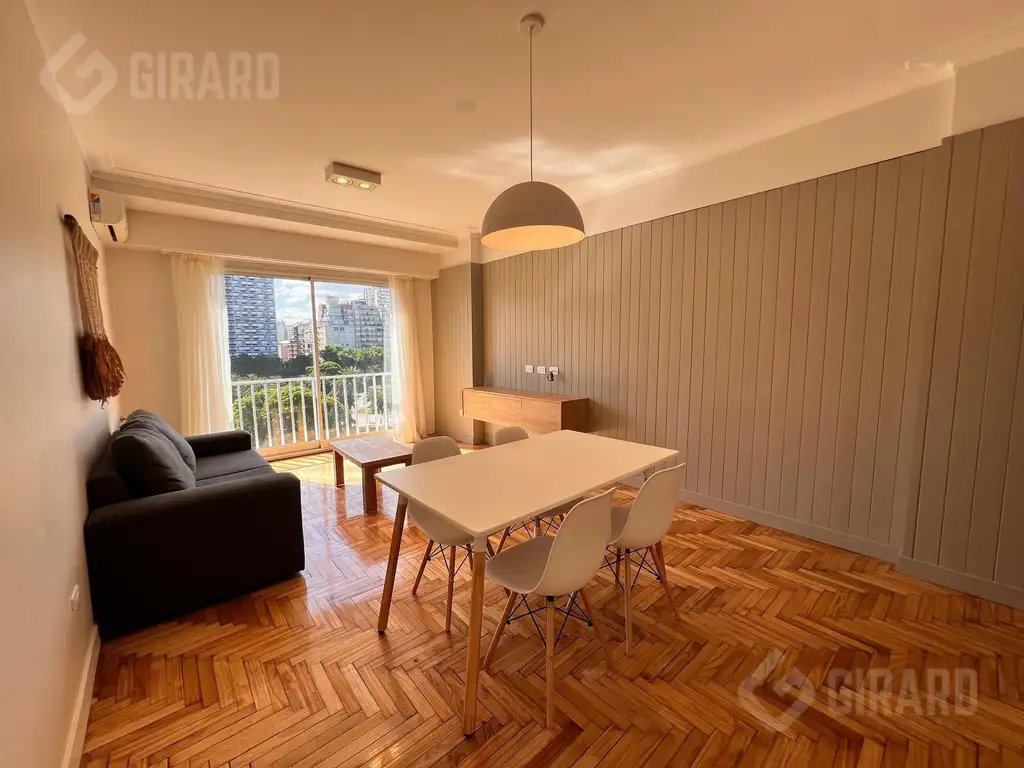 Living comedor a la calle con balcón francés y vista panorámica, equipado con placard empotrado, pisos de parquet y balcón saliente con vista a la placa colon.