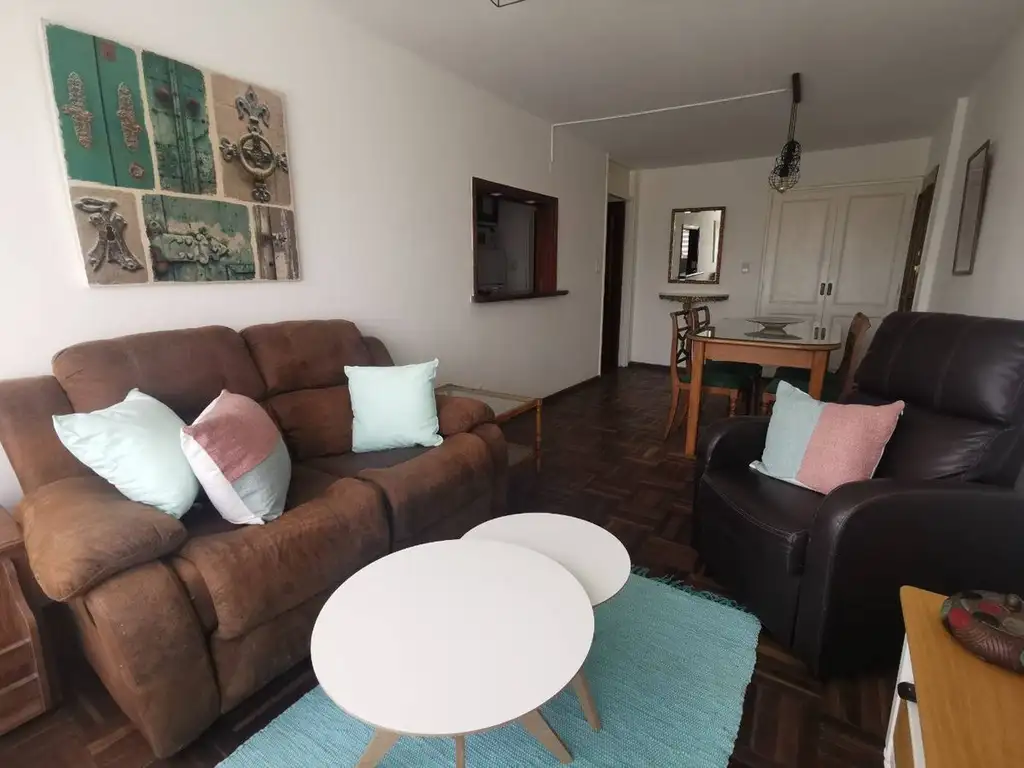 Cocina definida con pasa platos, con muebles sobre y bajo mesada y con terraza lavadero. Baño completo con mampara moderna que completa la distribución práctica del espacio.