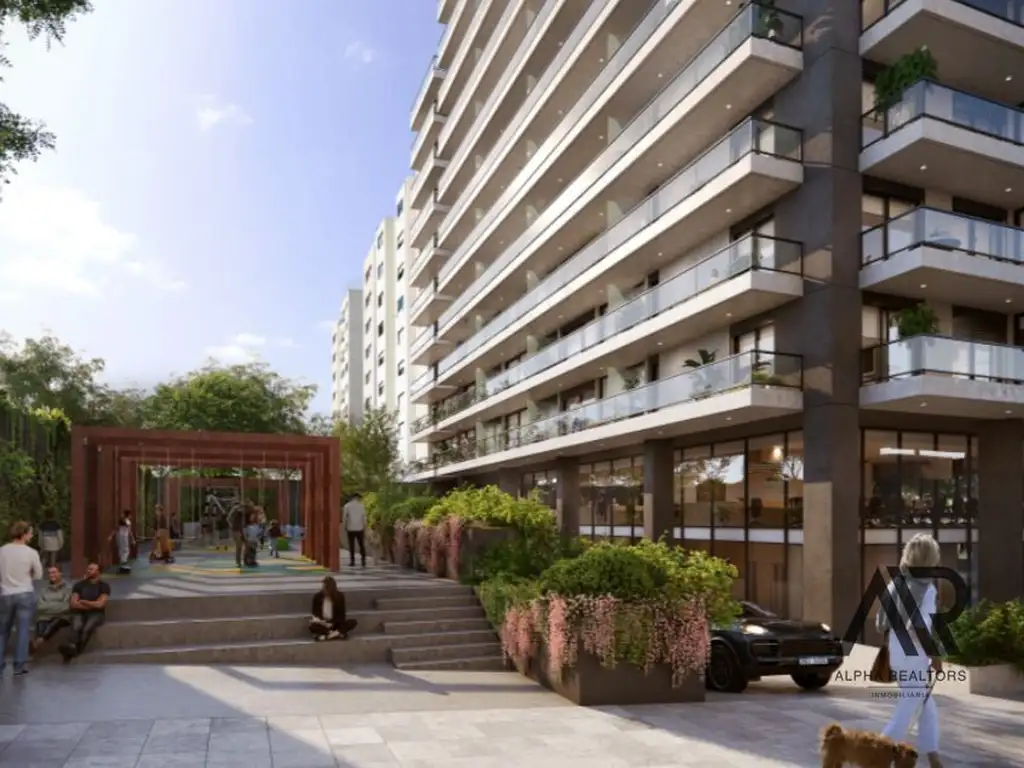 El apartamento tiene un precio de U$D 216.537 y se ubica en una torre de 18 pisos que combina arquitectura contemporánea con detalles de alta calidad. En la planta baja, una base vidriada con columnas de doble altura enmarca un elegante lobby de acceso y un local comercial. En el primer piso, un espacio corporativo de planta libre ofrece múltiples posibilidades. Un paseo peatonal de 17 metros de ancho conecta ambas calles, aportando privacidad y mejorando la circulación del entorno.