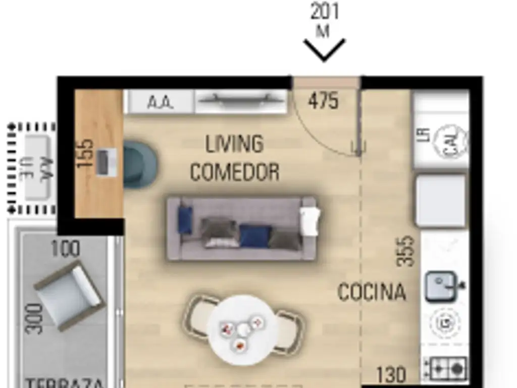 Unidad 201, segudo piso con vista lateral, orientación Oeste.