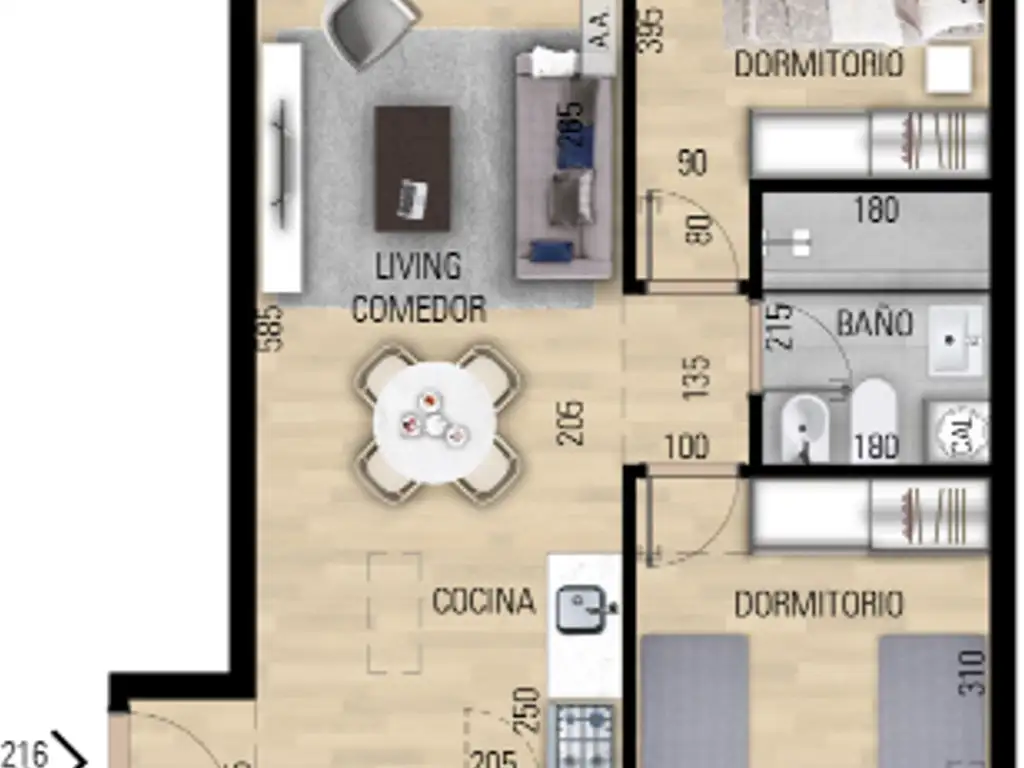 Apartamento unidad 216 en el segundo piso frente a calle Sitio Grande, con orientación Norte.