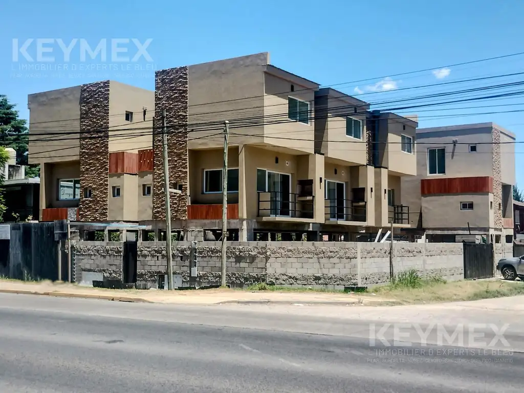 Encontrandose ubicado sobre la Avenida Juan Domingo Perón y María Remedios del Valle, a 2,3 km, 5 minutos, del kilometro 50 de Panamerica Ramal Pilar, estrategicamente para abastecer las necesidades del Hospital Universitario Austral y alrededores, se trata de 3 bloques que incluyen 3 unidades cada uno, generando una disponibilidad de 9 departamentos en su totalidad, unificados por las cocheras en planta baja; ofreciendo seguridad ya que el condominio está completamente cerrado, con entrada por la calle Maria Remedios del Valle y, salida por Av. J. D. Perón para los vehiculos por porton.