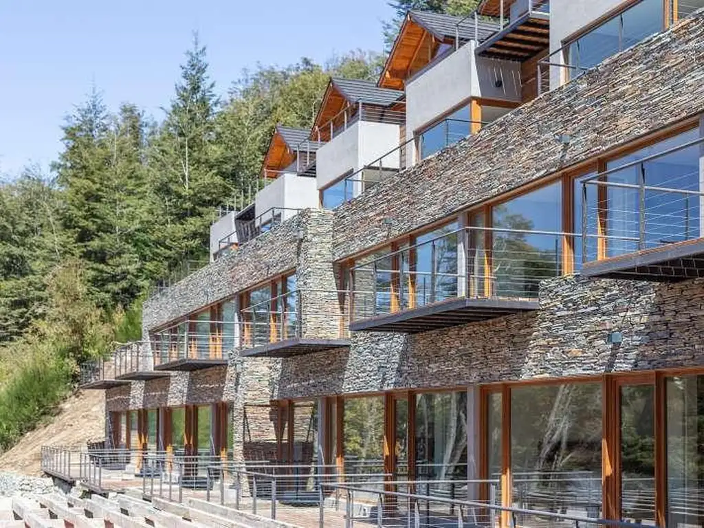 situados sobre la ladera de la montaña, con vista panorámica al Lago Correntoso.