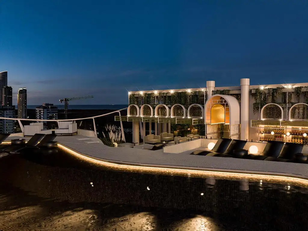 Se desarrolla en una torre con 160 departamentos de gran jerarquía distribuidos en 26 pisos con unidades de 2 ambientes, 2 ambientes con dependencia y 3 ambientes .Parking privado y cocheras de cortesía y espacios de cargadores eléctricos para vehículos dentro de las instalaciones. Unidades con piscina propia y amplios balcones.