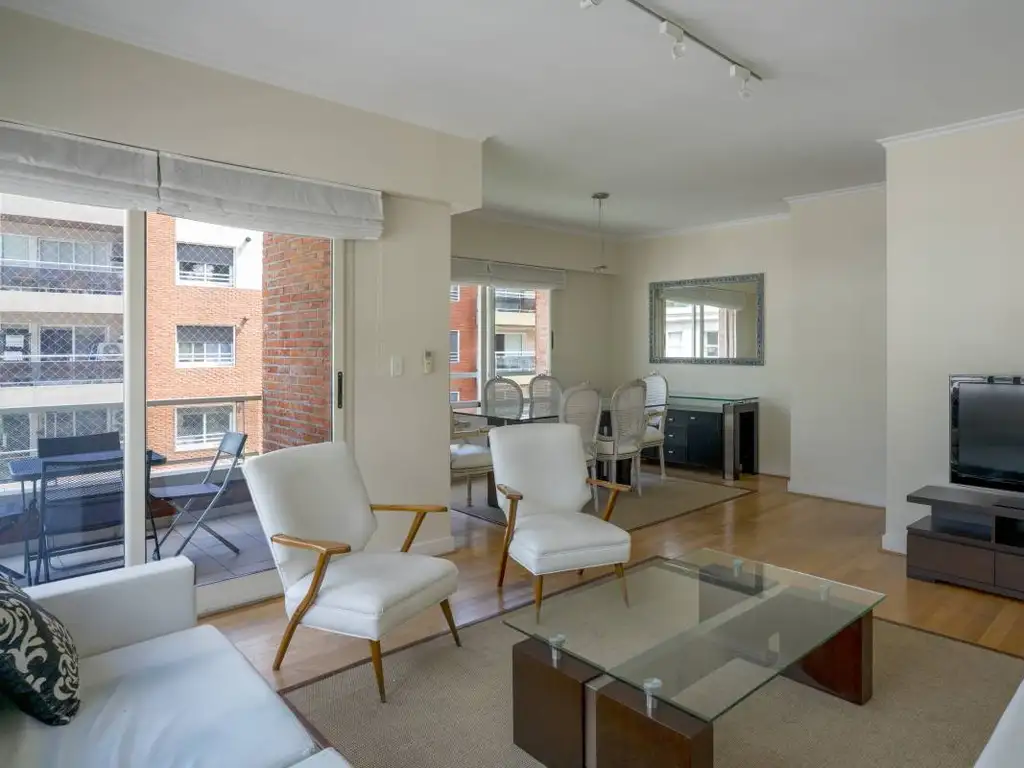 Living y comedor con salida a un balcon en esquina. Toilette.