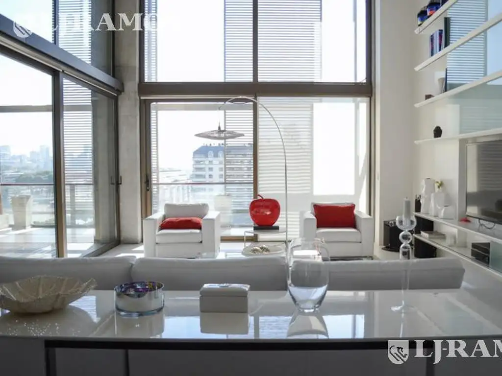 DUPLEX, EXCLUSIVO, UNICO EN PUERTO MADERO sup. 770 m2 amoblado y equipado con muebles de diseño, con BALCON TERRAZA JARDIN VERTICAL. CUATRO (4) COCHERAS FIJAS. AMENITIES. Seguridad 24 hs. Todos los ambientes al exterior.