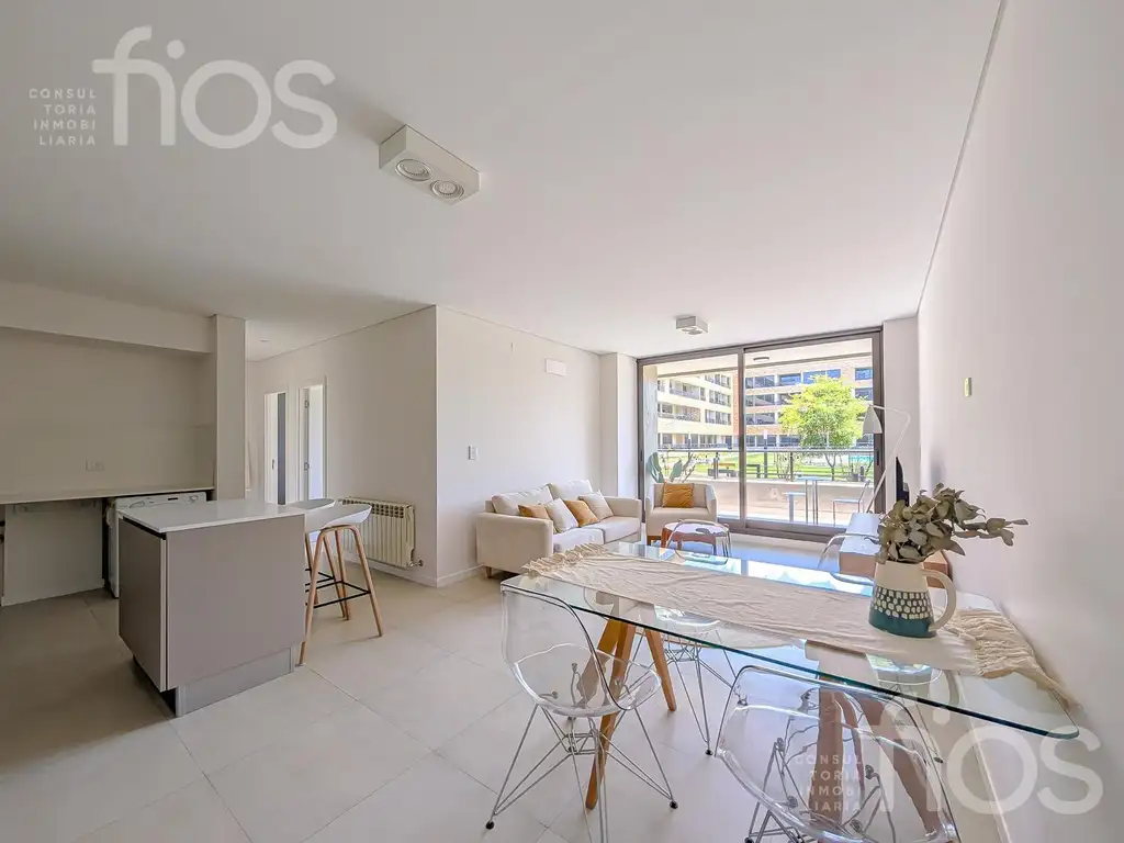 El ingreso conduce a un estar-comedor amplio y luminoso, con salida directa al balcón. La cocina semi integrada se vincula mediante barra desayunadora y dispone de lavadero independiente, combinando funcionalidad y diseño. Además, incorpora un espacio de escritorio ideal para home office. La superficie total de uso exclusivo es de 66 m2.