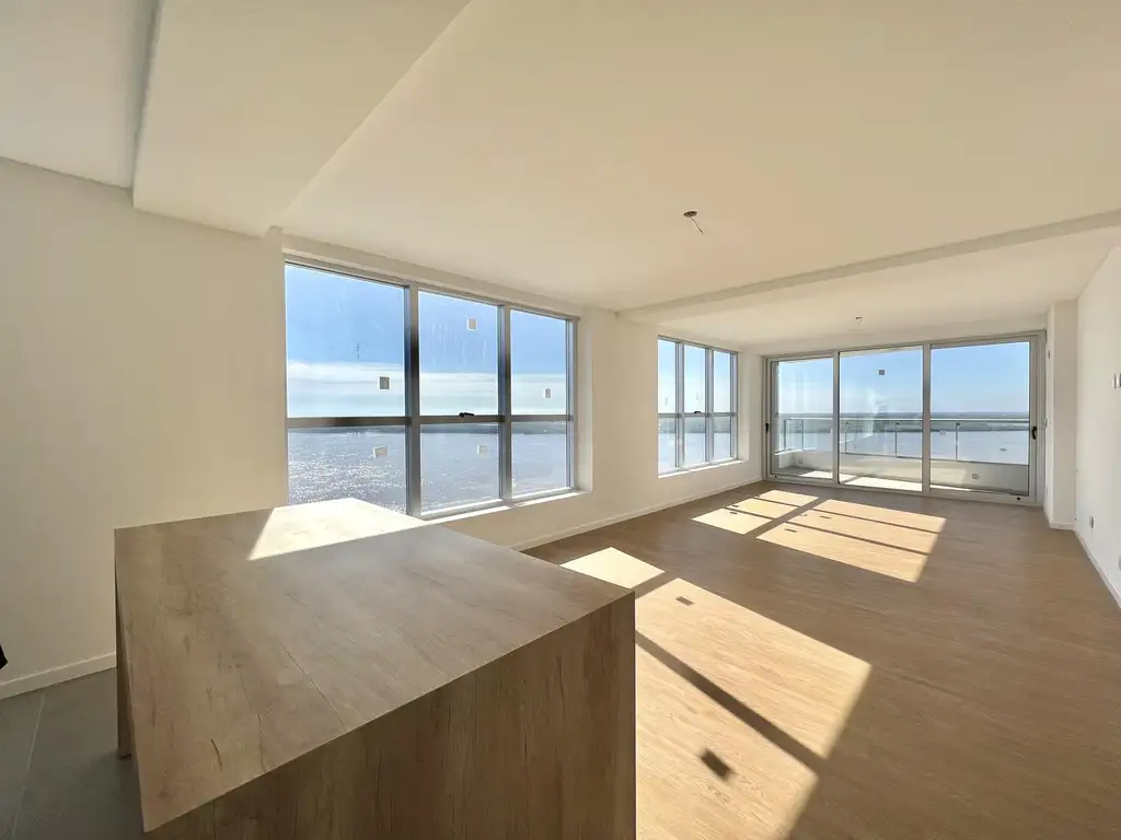 Al ingresar al departamento nos encontramos con un amplio y luminoso living comedor, con vista franca al río y salida al balcón corrido. Cuenta con un baño de cortesía. La cocina semi integrada con una isla en el centro, totalmente equipada. Lavadero con espacio para una despensa. El sector íntimo de la propiedad, también con vista río, se compone por tres dormitorios, el principal con baño en suite y vestidor, los dos restantes con placard y un baño completo.