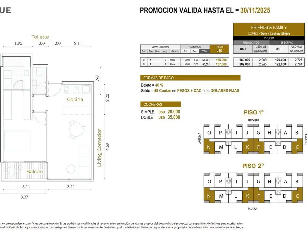 Financiado: USD 182.000 - 40% al boleto y 40 cuotas en PESOS + CAC