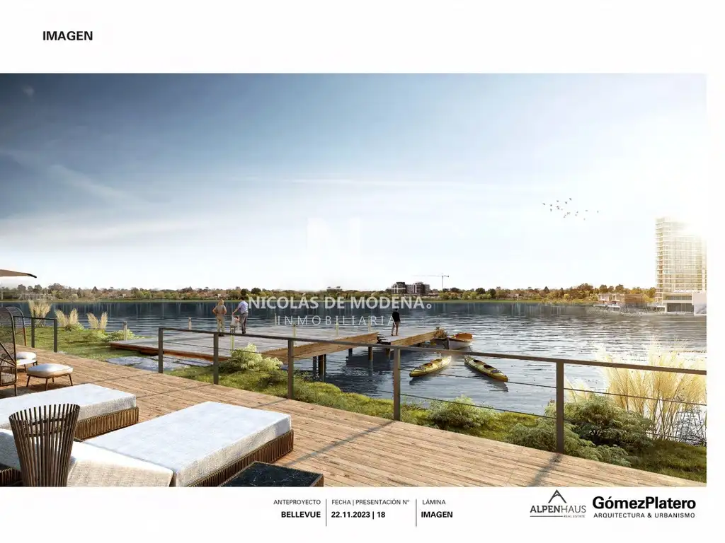 El proyecto incorpora un jardín verde elevado y amplios espacios exteriores que dialogan con la vasta extensión del cuerpo de agua. La vista se abre hacia el lago y también hacia el paisaje rural de Canelones, creando una sensación de amplitud y serenidad que acompaña cada momento del día.