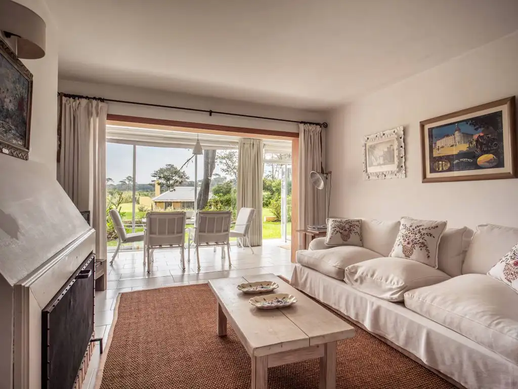 2 dormitorios, 2 baños, living- comedor con chimenea, todos con salida al jardin. Cocina independiente, con lavadero.