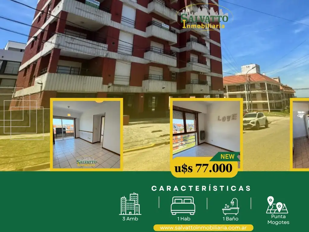 DEPARTAMENTO DE 2 AMBIENTES CON VISTA AL MAR Y COCHERA EN PUNTA MOGOTES