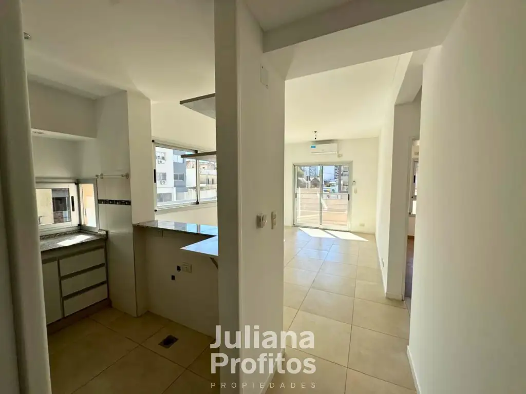 Departamento de 2 ambientes consta de 1 dormitorio con piso flotante con placard e interiores, baño completo, amplio balcón, living cocina comedor todo integrado con barra divisora.