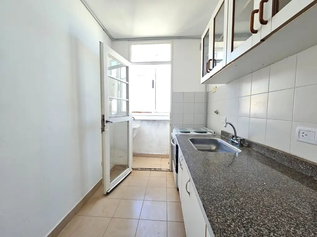 A la derecha, se encuentra la cocina con muebles de alacena, bajo mesada y lavadero integrado con espacio para lavarropas y termotanque eléctrico.
