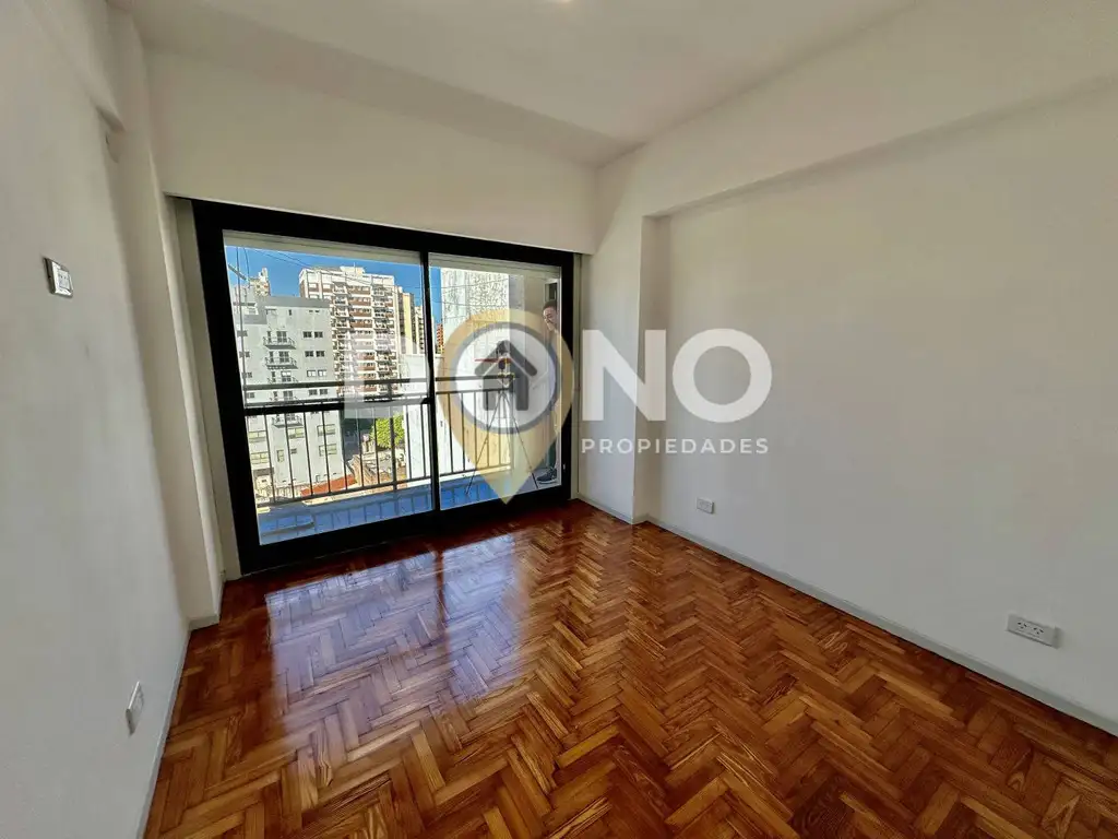 Propiedad con 2 habitaciones. AL ingresar se accede al living desde el que se tiene acceso al balcón corrido, ya que comparte con la habitación principal. Ambos ambientes dan al frente del edificio. Cada una de las habitaciones posee placares embutidos.