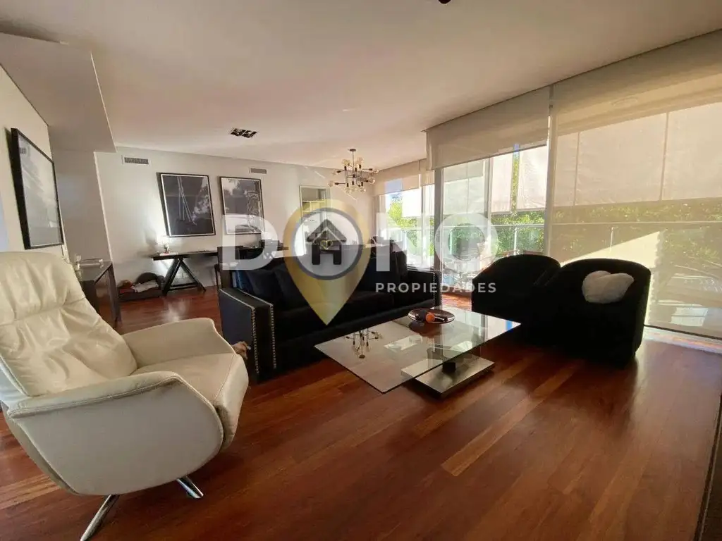 Piso categoria premium de 4 ambientes . Doble entrada: principal con palier privado y ascensor de acceso con código de seguridad y entrada de servicio con puerta pentágono. Cocina comedor, lavadero independiente. Living comedor. con luz led difusa RGB. muy amplio con 2 balcones, uno al frente aterrazado con toldos automatizados, y otro lateral semicubierto con parrilla. Toilette, 2 dormitorios con placards y baño en semi suite completo y compartimentado con doble bacha. Dormitorio principal en suite con vestidor, balcón con vista al río, baño tripartimentado con gran mesada y bacha, hidro, ducha y sanitarios a parte. Cochera doble en primer subsuelo. Baulera. Calefacción y refrigeración central individual sectorizada. Caldera para el agua caliente. Grupo electrógeno. Vigilancia 24 hs. SUM equipado. Gimnasio. Piscina.