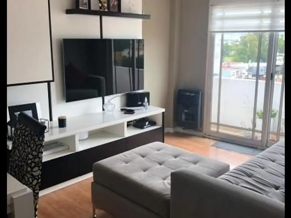 DEPTO 3 AMB. AL FRENTE CON PEQUEÑO BALCON, LIVING COMEDOR, COCINA SEPARADA, BAÑO COMPLETO, DORMITORIOS CON PISO FLOTANTE Y PLACARD ESPEJADO, 1 COCHERA SEMI-CUBIERTA AMPLIA PROPIA.